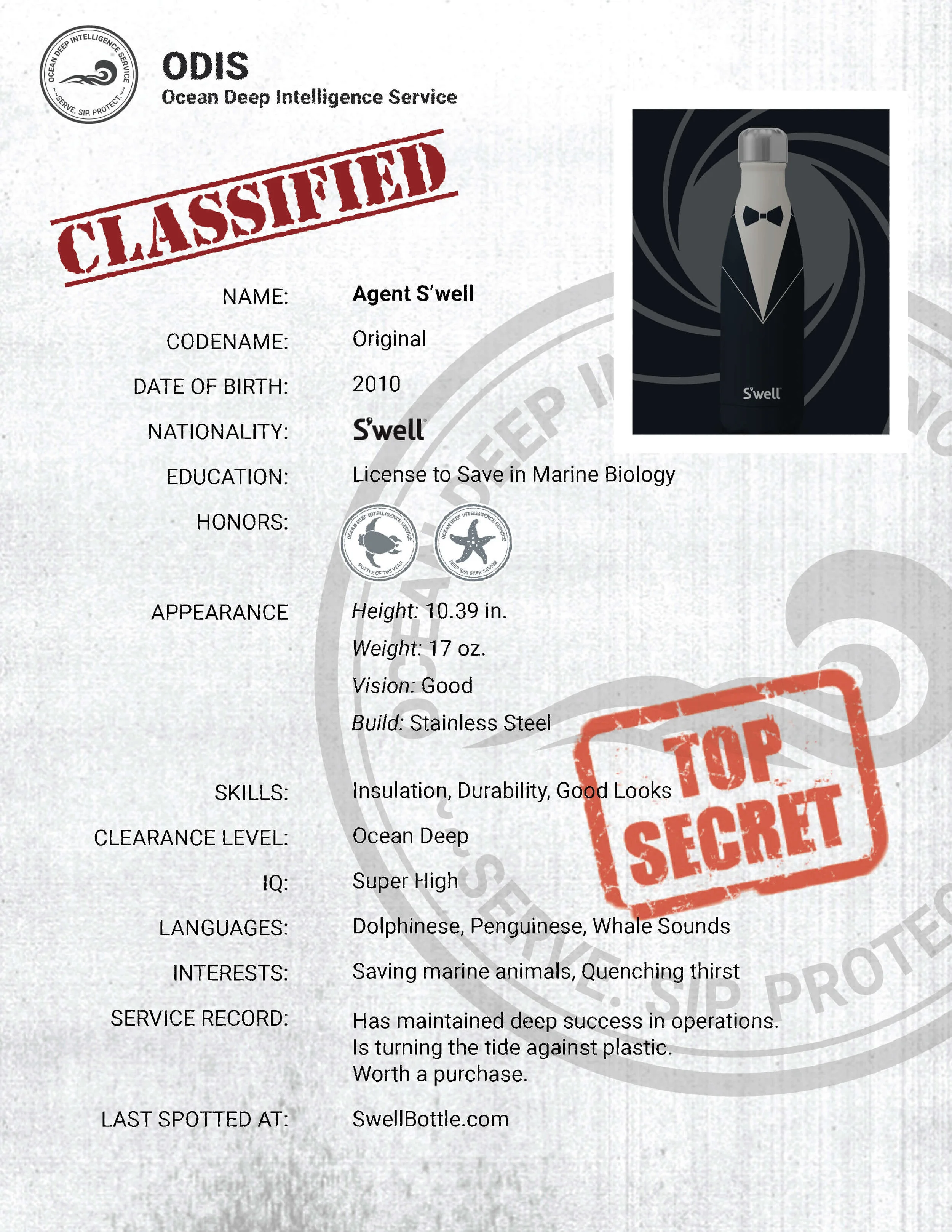Mr. Bond served MI-6. S’well has the Ocean Deep Intelligence Service.